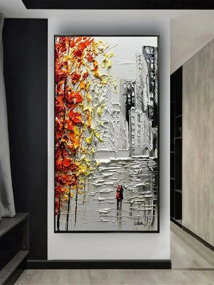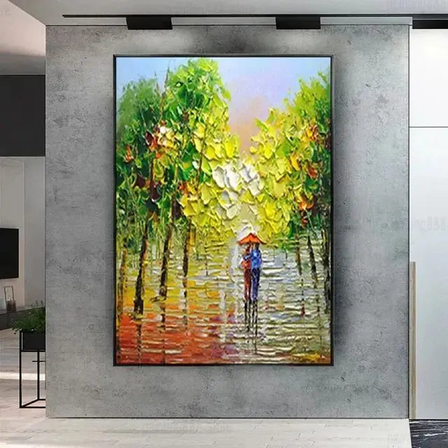 Handpainted Abstract Oil Painting on Canvas Rainy Day Wall Art for Home Living Room Salon Decor Unique Artwork for Modern Hom