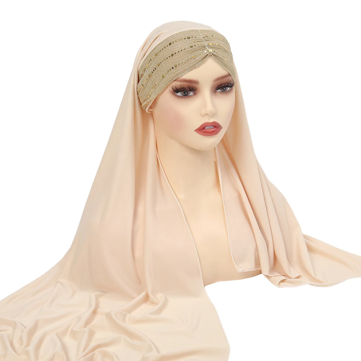 New Muslim Women Khimar Sequin Hijab Cross Forehead Scarf Headwrap Islamic Clothing Headscarf Amira Headband Turbante Mujer